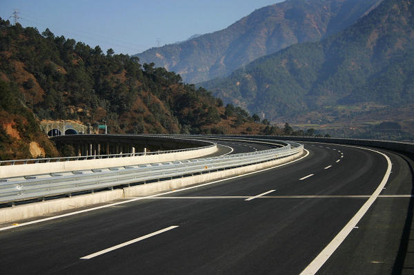 飛速車內(nèi)習(xí)習(xí)涼氣與車外秋初焦灼的熱浪形成鮮明的反差,此時此刻,我內(nèi)心真的不知道是燥熱還是涼爽?隨著車子漸行漸遠,不知不覺穿過了第一座高速隧道,這也是我首次經(jīng)歷的第一座公路隧道,隧道內(nèi)雖然不太明亮,但還是可以滿足正常通行照明的需要。因為是首次通過隧道,盡管不感到特別陰森恐懼,但還是免不了有點怯怯諾諾的失態(tài)之舉,此時的我立刻有種與世隔絕別樣的感覺,似乎太像一位沒有見過太多世面的羞澀“孩童”了!同時也喟嘆人類力量的偉大和巧奪天工的壯舉!正于一位偉人所斷言的那樣——上天可攬九月,在下可五洋捉鱉!可我還想補充一句——逢山可洞穿山神!從車窗遠望去,那高聳云端的立柱橋蹬屹立在巍峨的群山叢嶺之間,架起一條高速‘玉帶’,我情不自禁地脫口而出——一橋飛架南北天塹變通途!