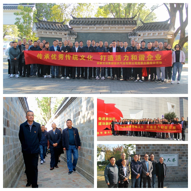 為深入貫徹習近平總書記考察安徽時的重要講話精神,進一步弘揚中華優(yōu)秀傳統(tǒng)文化,加強精神文明建設,提升黨員干部的崇德尚禮品質(zhì),安慶公司黨委于11月7日至8日,精心策劃并組織了以“傳承文化精髓,打造和諧企業(yè)新篇章”為主題的黨日活動。此次活動由公司黨委主導,桐城分公司黨支部具體承辦,市客運分公司黨支部積極參與協(xié)辦,實現(xiàn)了全司黨員干部的廣泛參與。